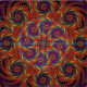 Ein tiefer Regenbogen färbte kaleidoskopische abstrakte Krake der psychedelischen Fraktalkunst mit Tentakeln in den endlosen Spiralen, die in ein Kaleidoskop von 8 bewaffneten Spiralen fließen. Gesättigte Farben einschließlich Rotes, Orange, Gelbes, Grünes, Blaues, Lila und Schwarzes blenden herein und durch die gewundenen Formen dieser ursprünglichen digitalen Fraktalgrafik aus.