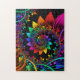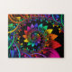 Mein Fraktal "die e-gehend Spirale" hat Spiralen helles rosa, lila, rot, orange, gelb, grün und des Blaus auf einem schwarzen Hintergrund.
