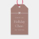 Lassen Sie Ihre Weihnachtsgeschenke mit diesen süßen und einfachen Weihnachtsmarken abschließen, die mit Ihrem bevorzugten Urlaubsgruß und Familiensignatur (gezeigt mit "Wishing you Holiday Cheer") auf einem Erdton Terrakotta Hintergrund individuell gestaltet werden können. Ein kleiner Bogen über der Oberseite vervollständigt dieses elegante minimalistische Urlaubsdesign. Backs sind weiß, um Empfängernamen zu schreiben, falls gewünscht.