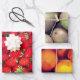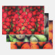 Rote Erdbeere, grüne Birne und orangefarbene Früchte, kundenspezifische Verpackungsblätter. Spaß Geschenkpackung für die Geburtstage, Weihnachten und mehr. Matte und glänzende Optionen. Coole Drucke zum Verpacken von Geschenken und Gastgeschenken. Set von drei.