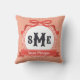 Dieses charmante, chinoiserie-artige Wurfkissen besticht durch ein volles Monogramm, das von einem klassischen griechischen Schlüsselkreis gerahmt und mit einem süßen Bogen überragt wird. Ein personalisierter Name Banner fügt eine raffinierte, individuelle Touch hinzu, die dieses Design perfekt zum Gaben oder Stylen einer preppy Zuhause macht. Mit seiner tausendjährigen Eleganz und dem schicken Palm Beach-Stil ist es ein idealer Akzent für Kinderzimmer-Segelflieger, Schlafzimmersessel oder kuratierte Sitzecken. Wählen Sie ein Single-Initial, das für einen Vor- oder Nachnamen steht (z.B. S für "Susan" oder W für "The Windhams") oder ein komplettes 3-Buchstaben-Monogramm. Verwenden Sie den freien Text auf dem Banner für einen vollständigen Namen, Vornamen oder Familiennamen. Bei Bedarf sind alle Farben im Zazzle-Design-Tool anpassbar.