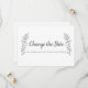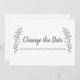 Stift gezeichnet Blätter und Zweig Save the Date Karte Schöne illustriert in Stift Sketch Stil und mit eleganten und großen Skript-Sprichwort "Ändern Sie das Datum". und Platz, um Ihre Wunschdaten hinzuzufügen. Ändern Sie die Namen und alle anderen Informationen wie Ort und Datum. Sie können Ihre eigenen Hochzeitsdetails oder Ihre persönliche Nachricht auf der Rückseite der Karte hinzufügen.