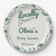 Wie Sie sehen, diese einzigartige und elegante Vegie vor Ort gewachsene Duschpapierplatte hat eine gut konzipierte Vorlage. Mit grünen handgezogenen Gemüse und geschriebenen Namen und Datum in grün. Und cremefarbener Hintergrund. Sie können diese einfach anpassen, indem Sie auf den Personalisieren-Button klicken.