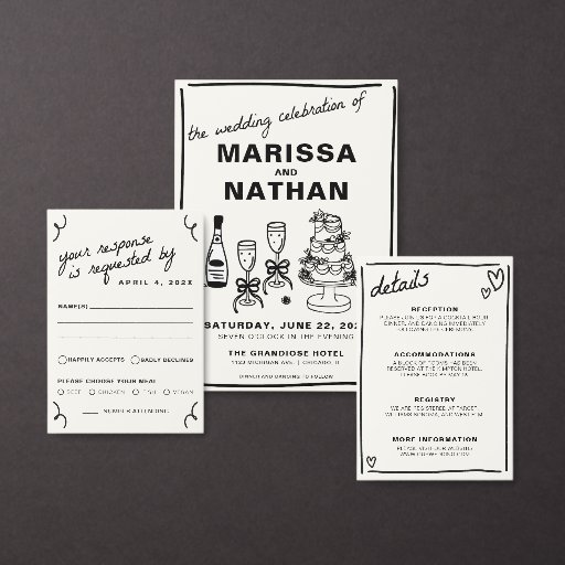 Fügen Sie Ihren Hochzeitsdetails eine spielerische und künstlerische Touch mit diesen Gezeichnet Traustickern! Diese Aufkleber sind mit fetten, handgezeichnet Illustrationen in einem modernen und unterhaltsamen Ambiente perfekt zum Abdichten von Umschlägen, Dekorieren von Gefälligkeiten oder um Ihren Schreibwaren einen einzigartigen Akzent zu verleihen. Eine trendige Art, Ihr Hochzeitstil mit einer Touch Persönlichkeit zu Krawatte!