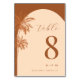 Gezeichnet Palm Tree Terracotta Monogram Beach Wed Tischnummer