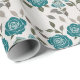 Gezeichnete Rosen in gedämpften Blautönen und Grün Geschenkpapier