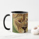 Löwe u. Tiger nuzzled zusammen für ihr Porträt auf dieser reizend Zazzle zwei Ton-Tasse.