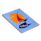 Phantastisches, lustiges Design, das ein Segelboot darstellt, das durch die Gezeiten des Ozeans navigiert, mit der Sonne im Hintergrund. Eine abenteuerliche ozeanische Lebensweise.