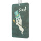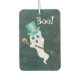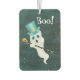 Dieser Autoluftkühler hat einen weißen Geist in einem sternförmigen Nachthimmel mit einem albernen Gesicht mit einem blauen Hut, der einen extravaganten schwarzen und goldenen Stock mit einem goldenen Schädel trägt. Passen Sie den Boo!-Text auf der Vorder- und Rückseite mit der Vorlage an.