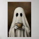 Ghost Drinking Coffee Print, Ghost Tea Whimsical Poster