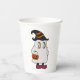 Ghost holding pumpkin and wearing witch hat pappbecher