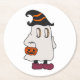 Ghost holding pumpkin and wearing witch hat runder pappuntersetzer