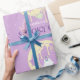 Ein leckerer, melziger gelber Mond mit lila Hintergrund und einem niedlichen, spukhaften Geist mit einem Eule-Freund. Perfekt für einen leckeren süßen Boo! Personalisieren Sie den Namen Ihres kleinen Mädchens für ein Spooktacular Halloween 1. Geburtstag Geschenkpapier.