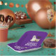 Ghost Pumpkin Bat Name Spooky Halloween Bash Lila. Ein lustiges Design für Ihren verwöhnten Party-Tisch. Der Text kann leicht personalisiert werden, einschließlich des Namens der Hosts. Mit Gespenst, Fledermaus und Kürbismotiv.
