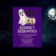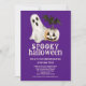 Ghost Pumpkin Bat Spooky Halloween Lila. Verfügbar in digitaler Form und gedruckt. Lade deine Freunde zu einem Spooky-Halloween-Party ein. Der Text mit den Details kann leicht personalisiert werden, und Sie können auch die Farbe dieses Textes und die Hintergrundfarben auf der Vorder- und Rückseite ändern, indem Sie auf Weitere Einstellungen klicken.