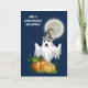 Niedliche Halloween-Mitteilungskarten, die an Familie und Freunde geschickt werden, bieten einen cool aussehenden Geist und Kürbis.