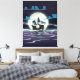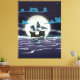 Holzschiff-Reise im Mondschein - Niedliches Holzschiff, das nachts unter dem Mond segelt, Cartoon in der Nacht.
