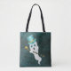 Dieser Totbeutel hat einen weißen, gekleideten Geist in einem blauen und goldenen Hut mit einem extravaganten schwarzen Stock mit einem goldenen Schädel oben, der in einem blauen Nachthimmel mit weißen Sternen vorne und hinten schwebt.