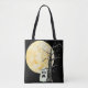 Gehen Sie Trick oder Treating im Stil mit dieser Tasche, mit einem kleinen Geist dekoriert, versteckt hinter einem leckeren Baum mit einem hellen Halloween-Mond hinter ihm in dieser whimsical Wasserfarbe. Verfügbar in zwei Größen!