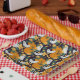 Ein spielerisches Halloween-Muster, gefüllt mit freundlichen Gespenstern, Kürbissen und blühenden Weinreben. Eine lustige Mischung aus leckerem und botanischem Stil in einem Vintagen Stil.