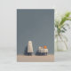 Ein niedliches kleines Gespenst in einem Blatt steht neben einem Set für Tee mit Kürbisteekanne und Leckereien. Minimalistische Halloween-Kunst mit gemütlichen, sprichwörtlichen Farben, perfekt für saisonale Dekoration, Drucke und Geschenke. Fügen Sie Ihrem Raum eine charmante Touch hinzu!