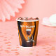 Vergnügliche Halloween-Themenbecher in unheimlichen Flammen wie Hintergrund. Die Grafik eines Skeletts mit einem Glas Wein schmückt die Mitte des Bechers mit einem Grautext, oben, der bereit ist zu personalisieren, um zu lesen, was Sie gewollt haben. Passende Halloween Cocktail Party Produkte sind erhältlich.