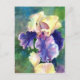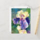 Wasserfarbe einer hübschen, weich bewachsenen Iris in all ihrer Pracht. Die Blues, Purpur und Gelbtöne des großen Sommers blühen vor einem weichen grünen Hintergrund und sind eine dramatische Aussage. Die Iris wird in der griechischen Mythologie als Symbol des Powers von Monarchen und Königsfamilien verwendet und ist auch als Göttin des Regenbogens bekannt. Aus der Blumensammlung der Aquarellkünstlerin Katherine Foltuz.