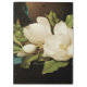 Giant Magnolias auf einem blauen Velvet Tuch (c. 1890) von Martin Johnson Heade ist ein Vintages Kunstwerk Viktorianisch Era Blütenleben Gemälde. Eine große blühende, weiße magnolische Blume blüht in voller Blüte auf einem Baumzweig mit Blätter aus dem Garten. Über den Künstler: Martin Johnson Heade (1819-1904) war während der Viktorianischen Ära ein fruchtbarer amerikanischer Maler, bekannt für seine Salzmarschlandschaften, Seegras, tropische Vögel, Lotusblüten und andere Stillleben. Sein Malstil entstand aus der Romantik der damaligen Zeit. Eine tiefe Ehrfurcht vor der Natur zog ihn zur Luministischen Malschule an. Der Luminismus wird in seiner Sorge um den Effekt des Lichts nun als Vorläufer des Impressionismus gesehen.