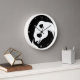 Abstrakter Panda-Bär auf einer schwarzen Uhr mit weißen Zahlen und Strichen