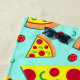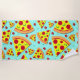 Trendfarbenes Strandtuch mit riesigen Pizzapieslices auf hellblauem Hintergrund. Funky Handtuch für Pizzaliebhaber!