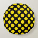 Giant Yellow Polka Dots on Black Round Pillow Rundes Kissen