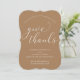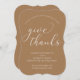 Laden Sie Ihren Erntedank mit dieser schönen Dankeseinladung ein. Die moderne weiße Schriftzeichen-Kalligraphie auf hellbraunem Hintergrund verleiht dem Haus einen eleganten Look für Ihr Abendessen im Urlaub.