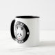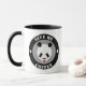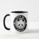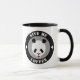 Ein niedlicher Panda-Kopf in Schwarzweiß-Rundscheibendesign. Mit Text, der "GIVE ME" oben, und "Kaffee" unten steht.