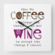 Funny Clock für Kaffee- und Weinliebhaber. "Gib mir Kaffee, um die Dinge zu ändern, die ich kann, und Wein, um die Dinge zu akzeptieren, die ich nicht kann". Es ist eine humorvolle Haltung gegenüber dem Gelassenheit-Gebet.