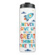 Gib nie auf, weil großartige Dinge Zeit brauchen Thermosbecher