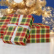 Geschenkpackung mit dem Tartan für Clan Gibbs und Gibson. Helles kariertes Muster aus dem Jahr 1994 in Rot, Gelb und Grün mit blauen und weißen Akzenten.