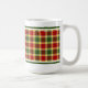 Kaffee Tasse mit dem Tartan für Clan Gibbs und Gibson. Helles kariertes Muster aus dem Jahr 1994 in Rot, Gelb und Grün mit blauen und weißen Akzenten.