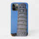This captivating photograph showcases the iconic Leaning Tower of Pisa standing elegantly against a deep blue twilight sky in Pisa. The historic marble tower, famous for its unmistakable tilt, is beautifully illuminated, highlighting its intricate Romanesque arches and layered columns.