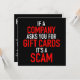 "Wenn ein Unternehmen dich für Geschenkkarten frage, ist es ein Betrug" Text, um das Wort zu verbreiten: Vorsicht bei Telefonanrufen, da es Betrüger geben kann, die versuchen, dir Informationen oder Geld zu stehlen. Die häufigsten sind Betrügereien des technischen Supports, IRS-Betrügereien, Bankbetrug und Betrug mit Schulden.
