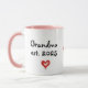 Cute mug for a (new) grandma, with message "Grandma est. (year) - Fueled by coffee and grandbaby (name)" as well as a playful little heart design. The text is fully customizable - change or delete. Celebrate the joy of becoming a grandma with this heartwarming mug. It makes the perfect gift for a new grandma. Whether it's for a baby announcement, a pregnancy reveal, her birthday, or just to make her smile, this mug is a daily reminder of her new favorite title - Grandma! Designed by Best Baby Gifts - given with love!