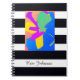 Gift For Him Modern Art Custom Name Chic B&W Notebook, with Black and White Stripes and a beautiful Original Modern Art Painting printed on the cover. Click personalize this template to customize it with the name quickly and easily. 30-Day Money-Back Guarantee. Ships worldwide fast.