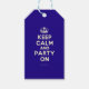 Basierend auf dem ursprünglichen Behalt Calm und ... Poster dieses cremefarbenen und blauen Behielt Calm und Party On Gift Tag bietet einen maßgeschneiderten Schriftart, dass dem Original eng passt.