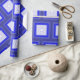 Single image of multiple squares in various shades of blue and gray, is tiled across the paper.