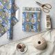 Grauspotter, Gelbflossen, Schwarz-Weiß-Fliegenfänger, Rot-Brauntöne. Vier Bilder von Wildvögeln überlagern sich und multiplizieren sich dann auf blauem Hintergrund über das Papier.