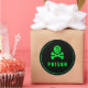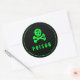 Schwarzer und grüner Schädel und Kreuzknochen auf Rundaufkleber. Große Größe, ideal für Halloween Bar; kleben Sie Ihre Weinflaschen oder andere Alkoholflaschen für ein halbes Thema. Weitere Farben sind verfügbar.