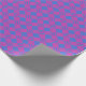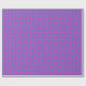 Eine Rolle glänzendes Verpackungspapier, mit einem Imitat-Patchwork-Muster in Magenta, Hellrosa, Türkis, Brilliant Blau und Lila.