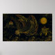 Gilded Chinese Black Gold Peacock Line Zeichnend Poster