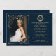 Eine formale, Foto, Abschluss-Einladung in Blau und Gold mit Blumenecken Akzente. <a href='http://www.freepik.com/free-vector/elegant-floral-frame-with-golden-ornaments_969125.htm'>Designed by Freepik</a>. <a href="http://www.freepik.com/free-photo/blond-woman-dressed-as-a-bride-leaning-on-a-door_981247.htm">Designed by Freepik</a>()<br/>() Die Karte ist einfach anzupassen mit Ihrem Wortlaut, Schriftart, Schriftart Farbe, Papierform Optionen und Auswahl von sechs Papiertypen.<br/>() Nicht genau, was Sie suchen? Alle unsere Produkte können auf Ihre Bedürfnisse zugeschnitten werden, ohne Aufpreis.<br/>()<br/>Kontaktieren Sie uns einfach unter askcottonlamb@gmail.com<br/>() Koordinierung der verfügbaren Produkte: frag uns einfach!
