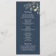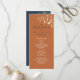 Bohemisch, modern, elegant, luxuriös marineblau und terracotta Hochzeitsprogramm, mit goldvergoldeter Blütenspitze und angesagter Kalligraphie-Schrift.
