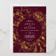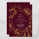 Diese vergoldete, blumenvergoldete Goldfolie bordeauxfarbene lässige Hochzeitfolie lädt zu einer eleganten Hochzeit ein. Das moderne boho-Design zeichnet sich durch eine skurrile Anordnung gepresster Blume, Blätter und Botanicals aus, die mit einer Goldfolie gezeichnet sind.